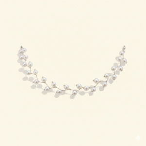 The choker-style necklace sits gracefully on the neck, enhancing the neckline and creating a balanced, sophisticated look. Its minimalistic pattern adds a refined touch.