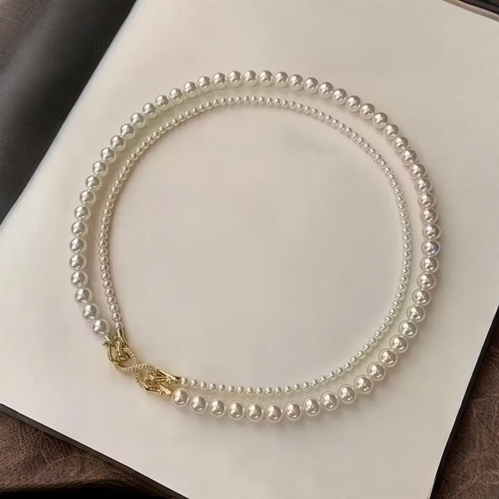 The delicately strung pearls offer a soft texture and polished finish, reflecting light subtly to add understated charm.