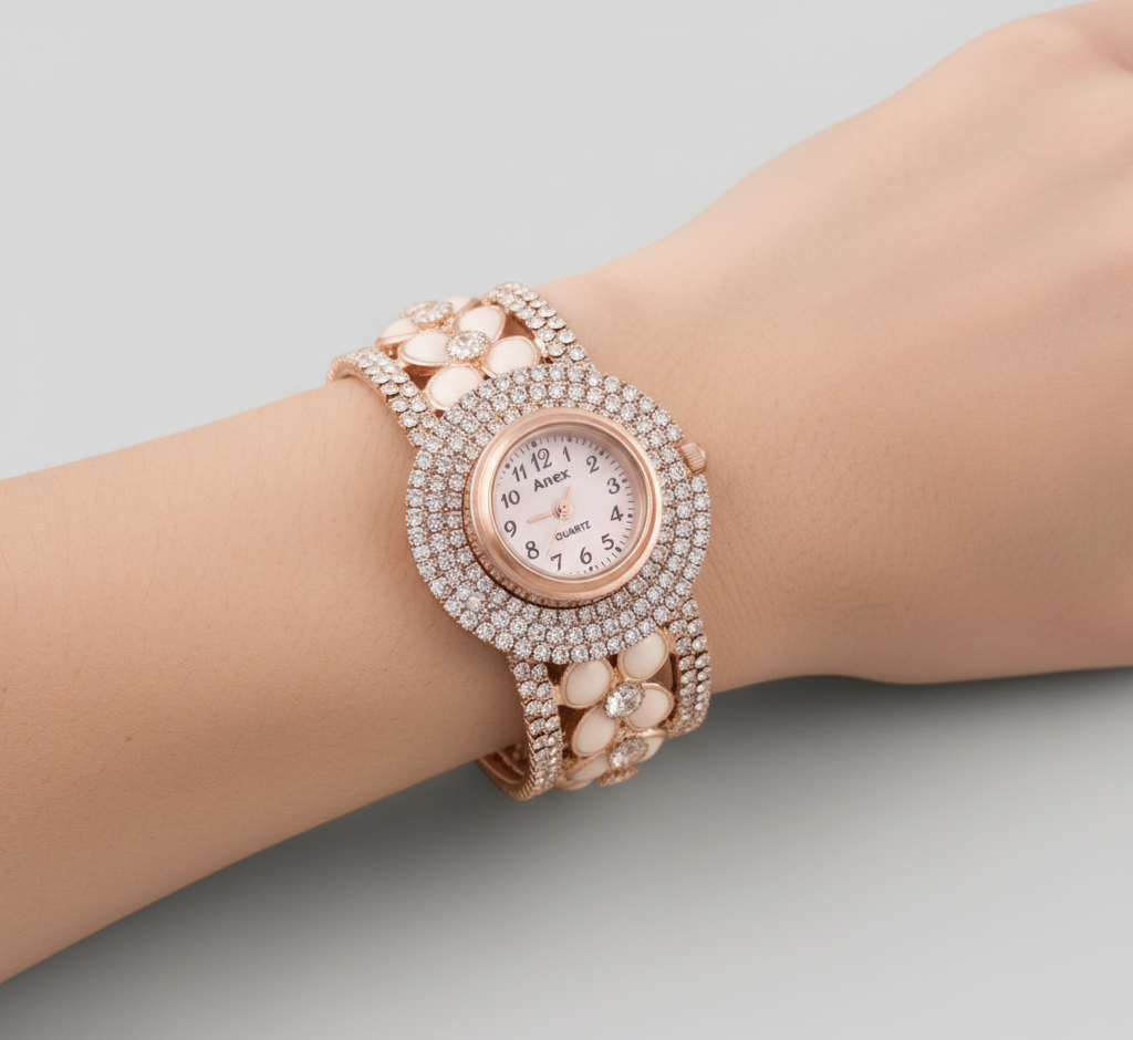 This bracelet doubles as a stylish timepiece, allowing you to accessorize while keeping track of time. The fusion of a wristwatch and jewelry makes it suitable for both daily and occasion wear. -