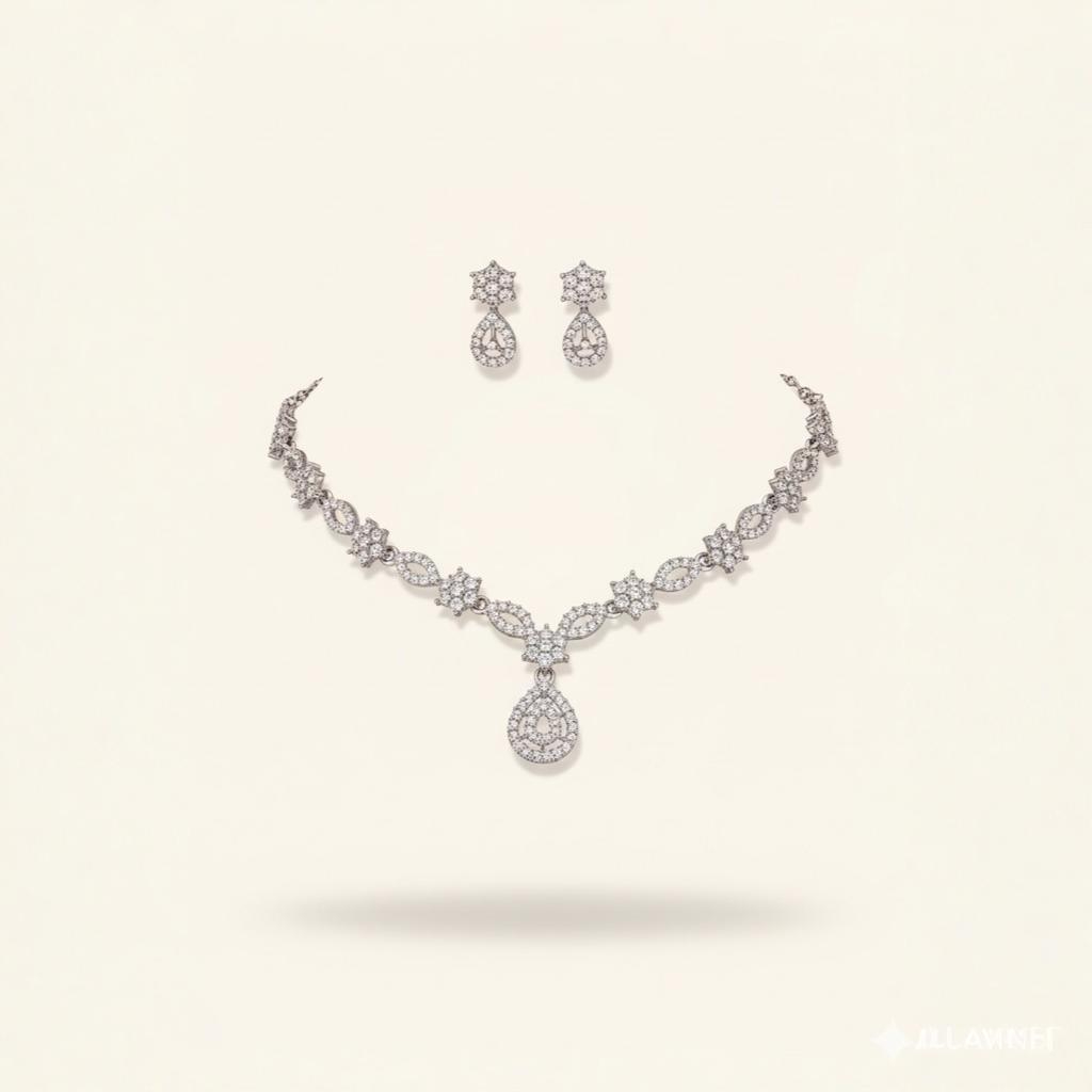 The necklace and earrings are made from a sturdy alloy that ensures long-term durability and shape retention. The material provides a smooth texture and maintains its shine with proper care. -